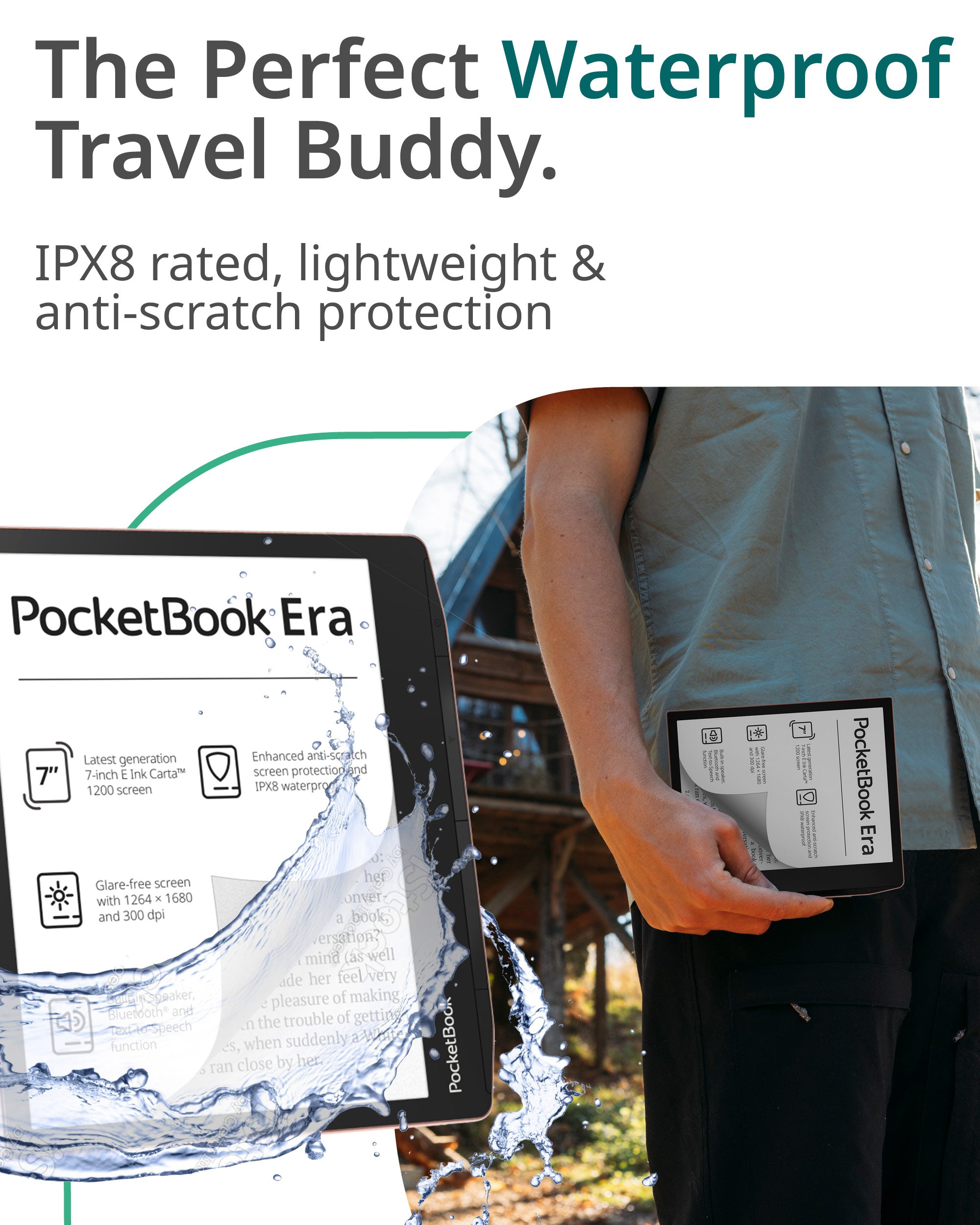 PocketBook Era meets the IPX8 standard, allowing it to be immersed in fresh water up to 2 meters deep for up to 60 minutes.
