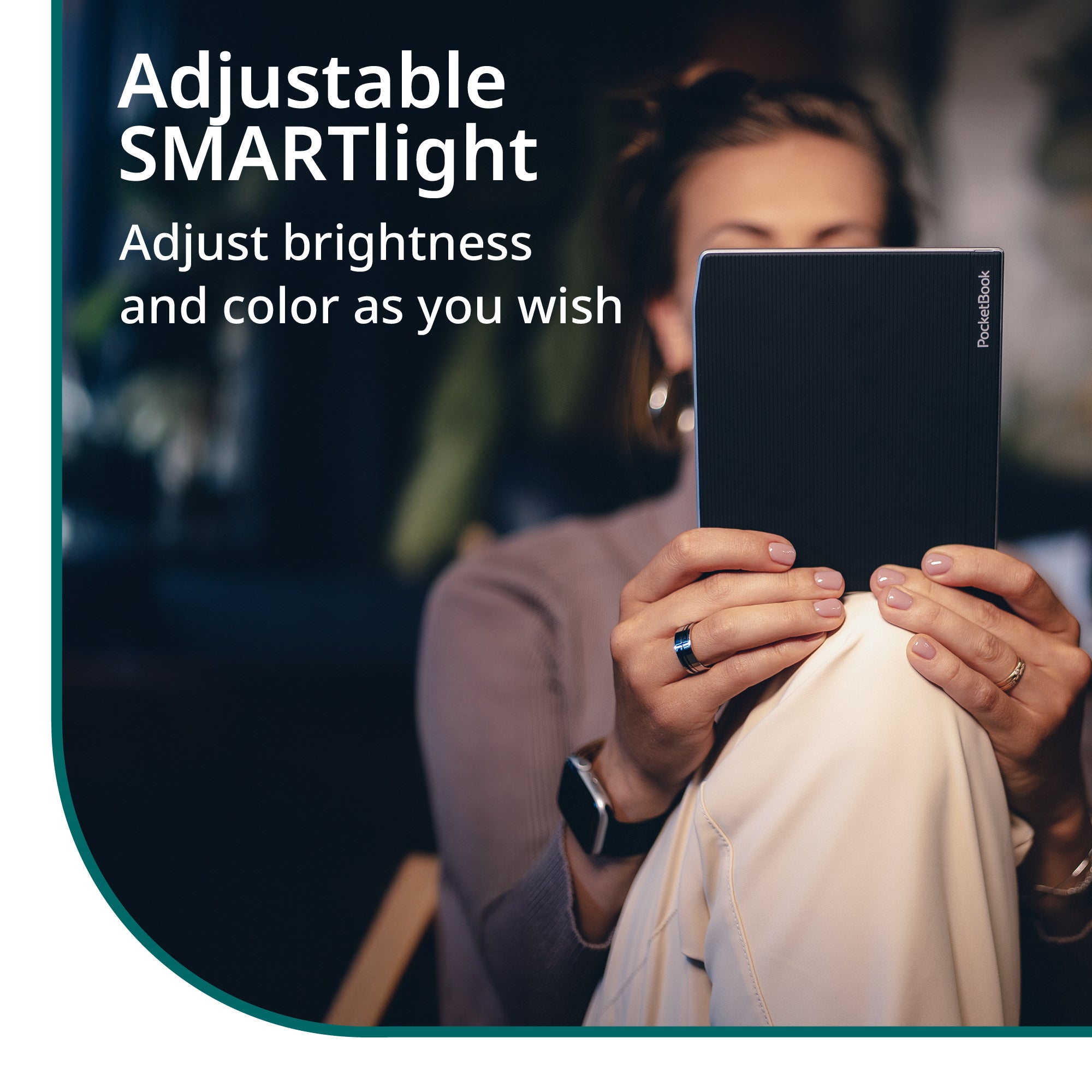 SMARTlight enhances the reading experience by offering a customisable front light. Tweak it however you want. From a cool bluish tone for daylight reading to a warm and soothing yellow hue for bedtime stories.