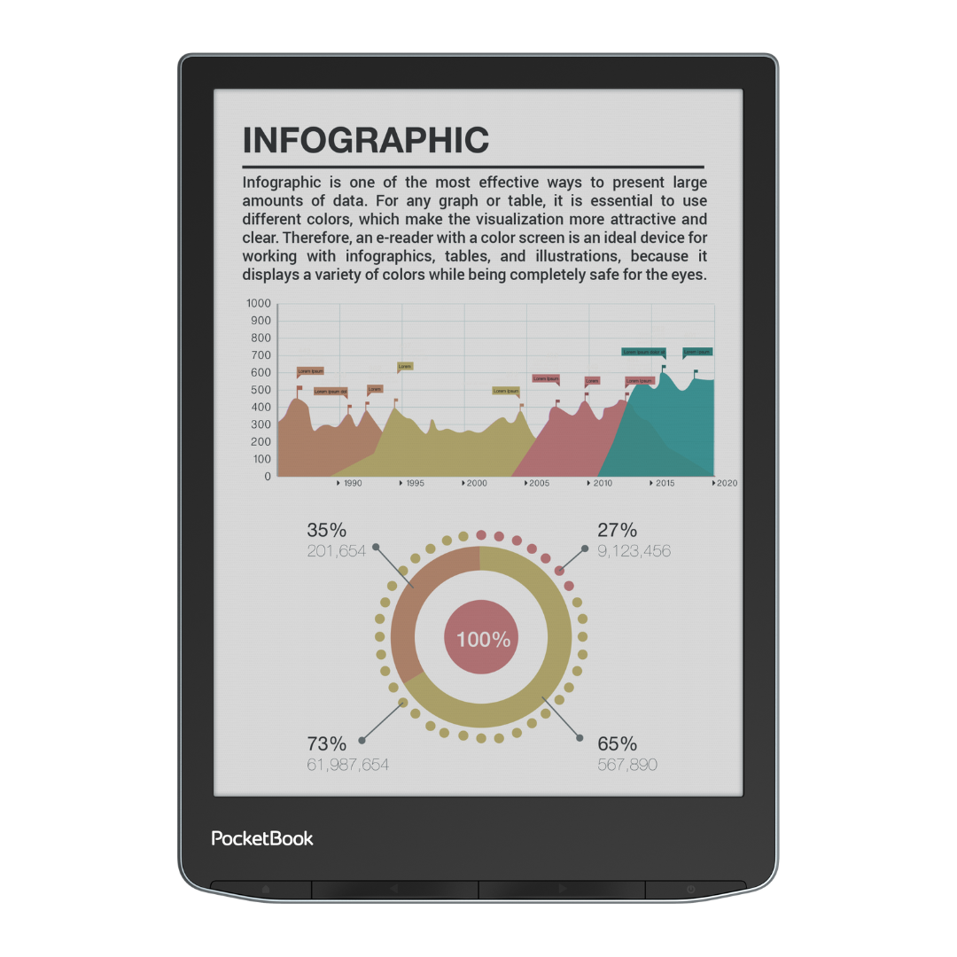InkPad Color 3 is perfect for reading books, comics, and documents thanks to its innovative E Ink ComfortGaze front light technology.