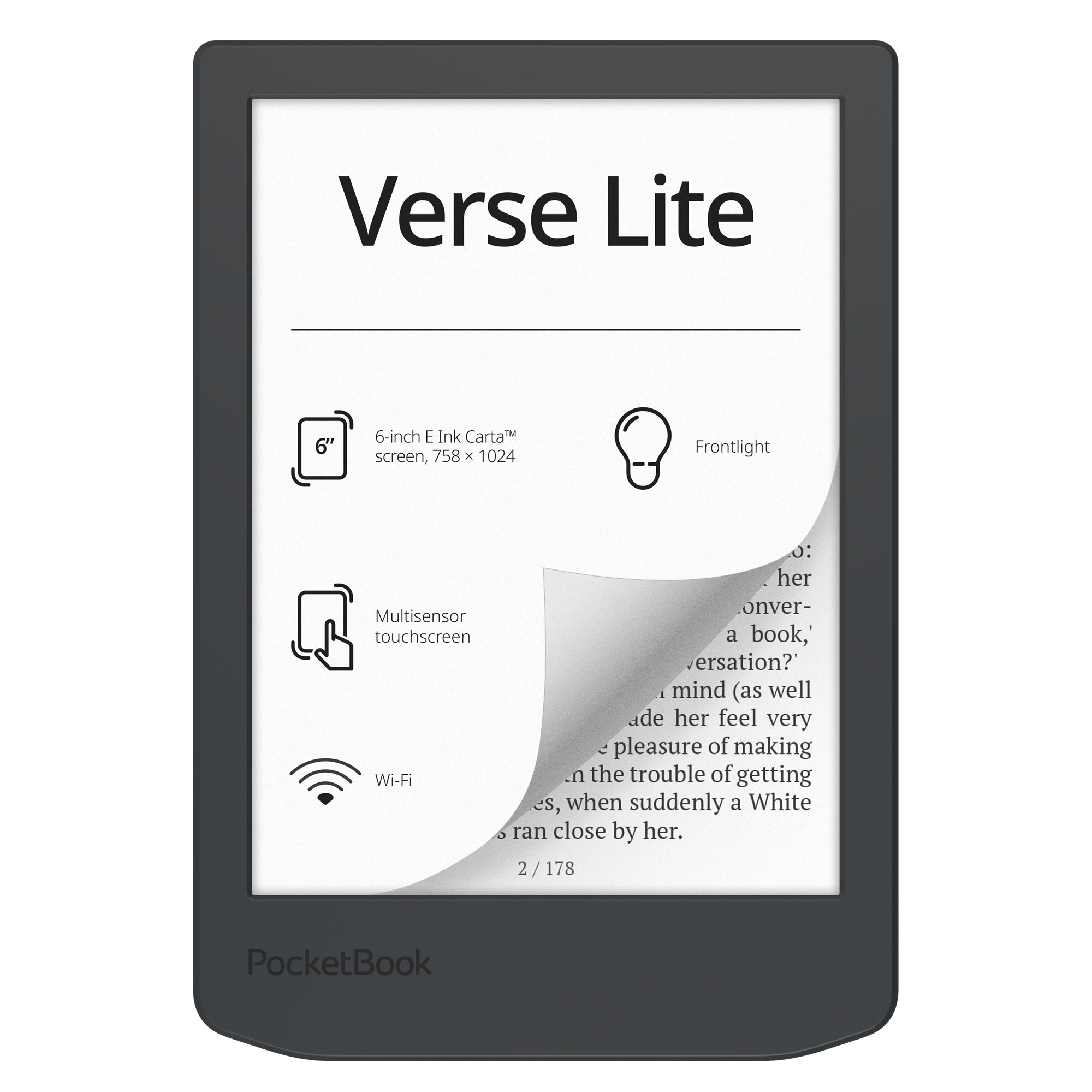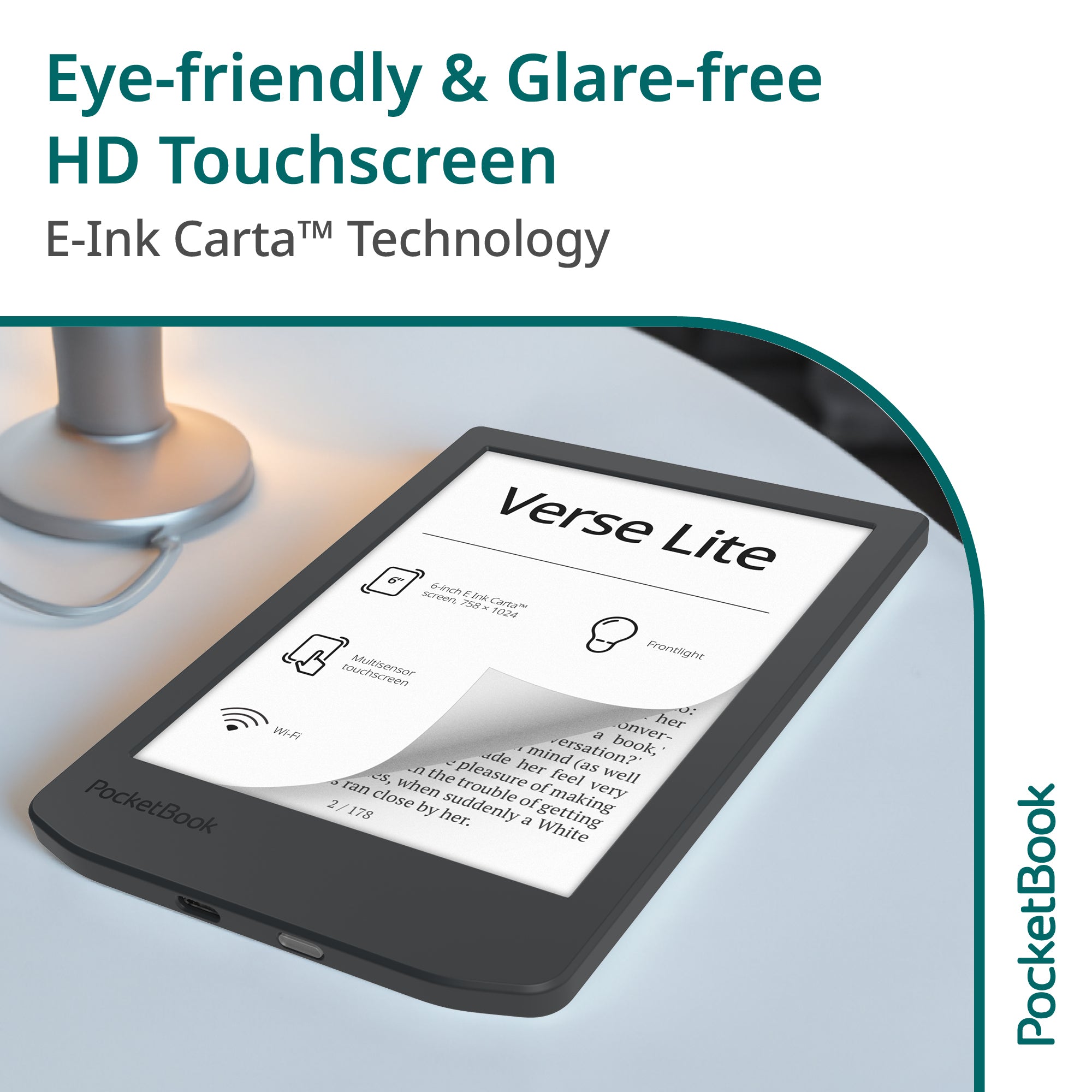 Verse Lite features an E Ink Carta display which looks like paper and offers a comfortable reading experience in any lighting condition.