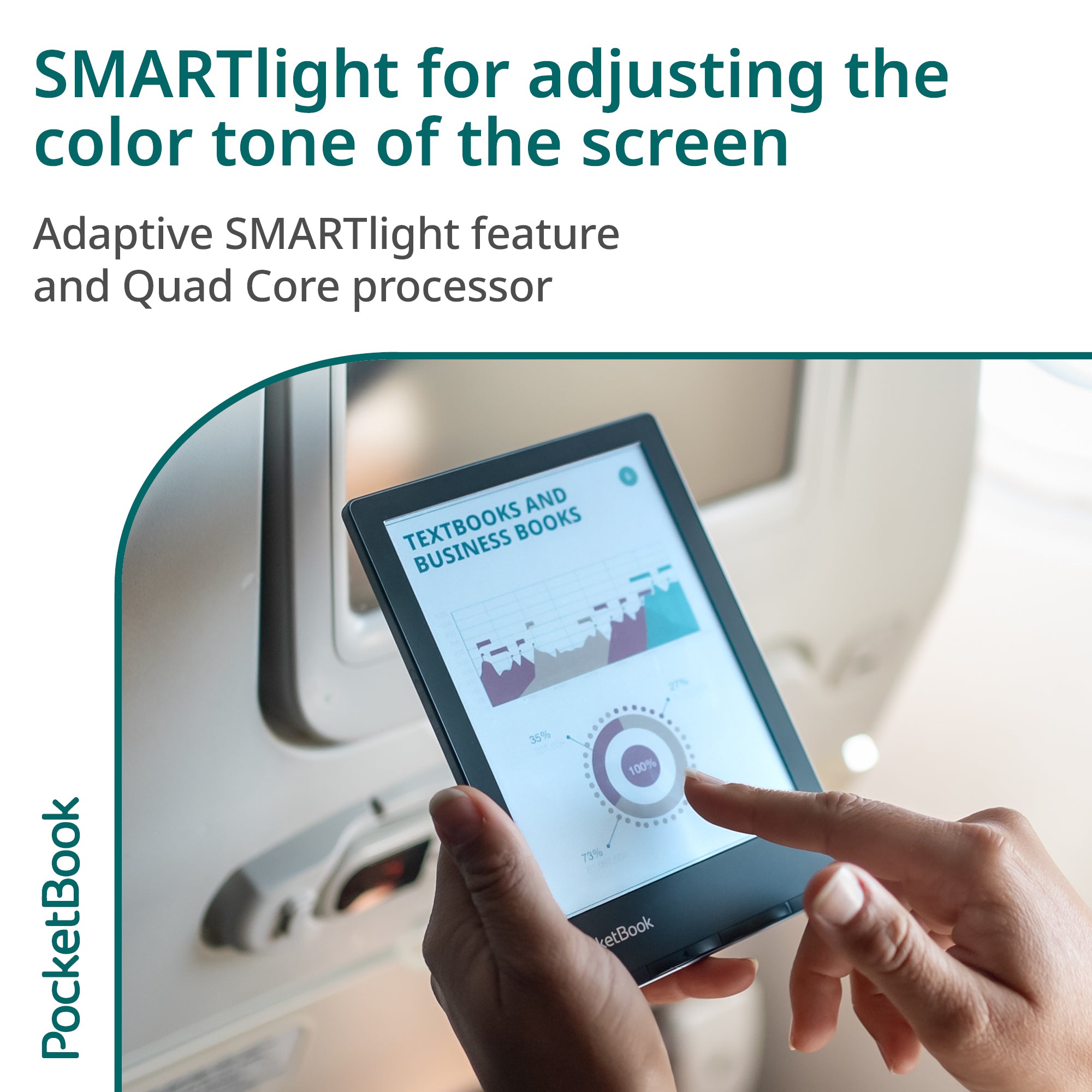 SMARTlight enhances the reading experience by offering a customisable front light. Tweak it however you want. From a cool bluish tone for daylight reading to a warm and soothing yellow hue for bedtime stories.